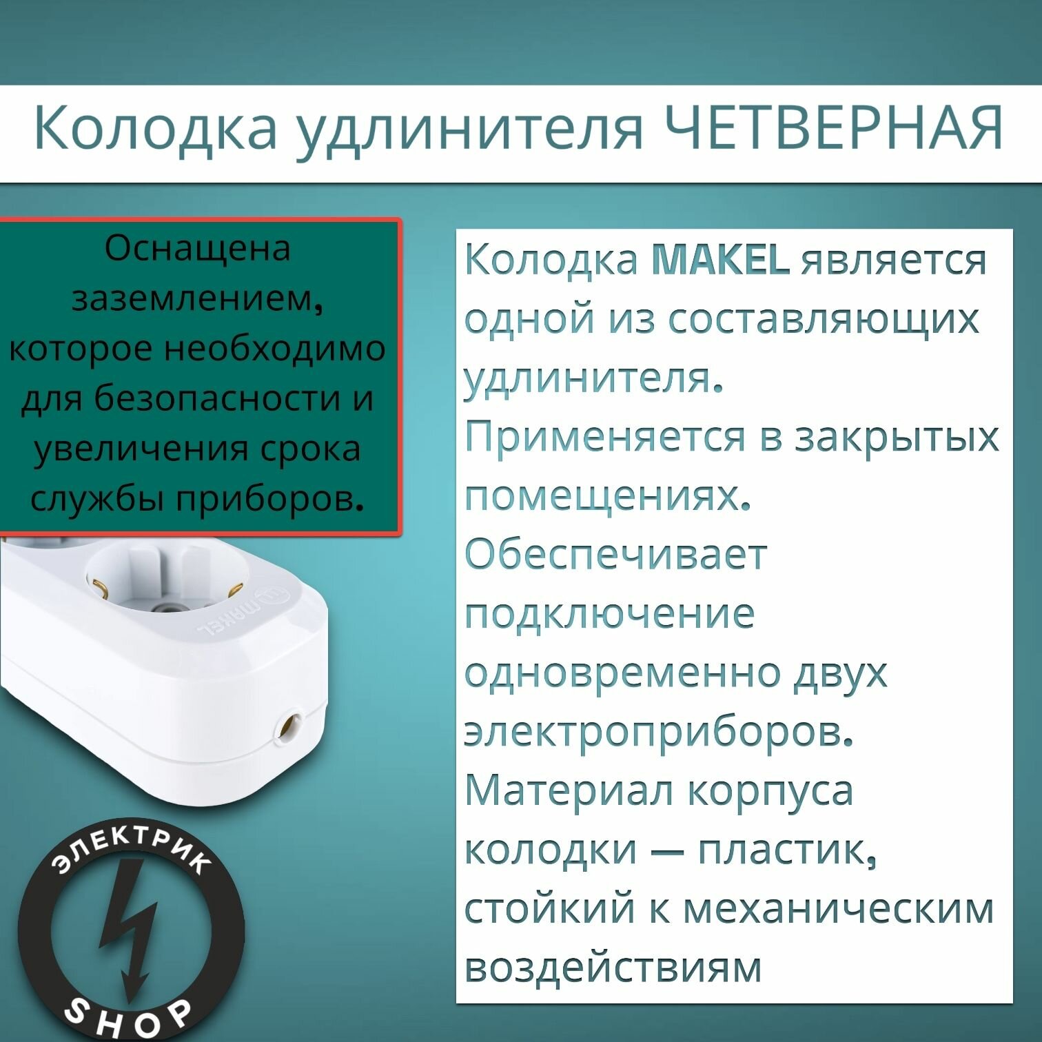 MGP151 Колодка удлинителя 4-м с заземл. Makel