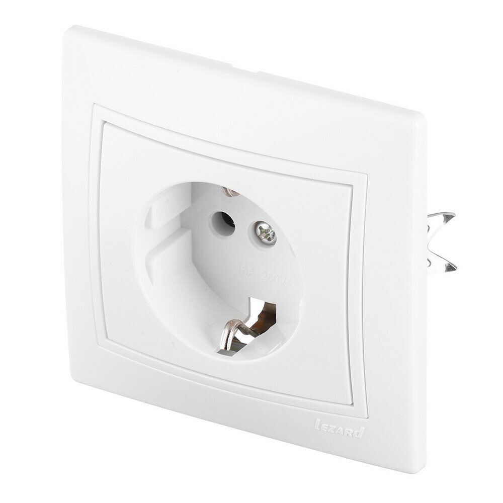 Розетка Lezard мира 1-местная скрытой установки с заземлением белая