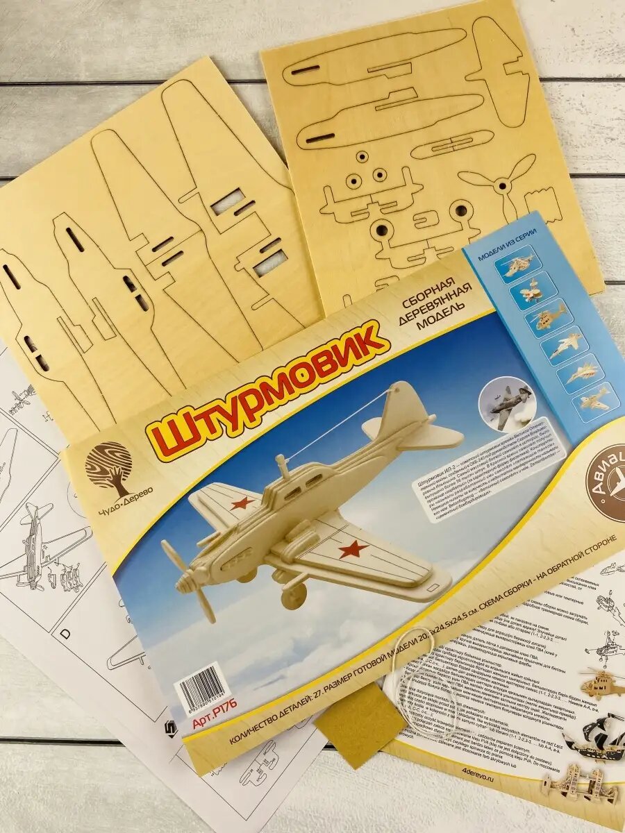 СохранитьСборная модель деревянная Штурмовик самолет интересное: