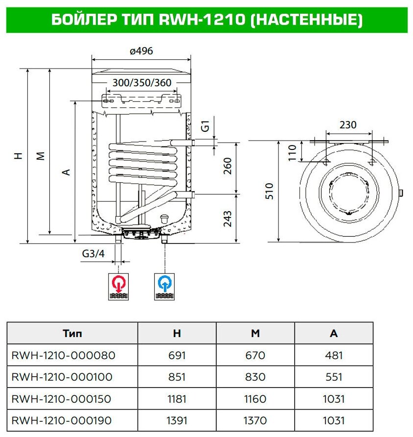 RWH-1210-000100 ROMMER бойлер косвенного нагрева настенный 100 л. интересное: