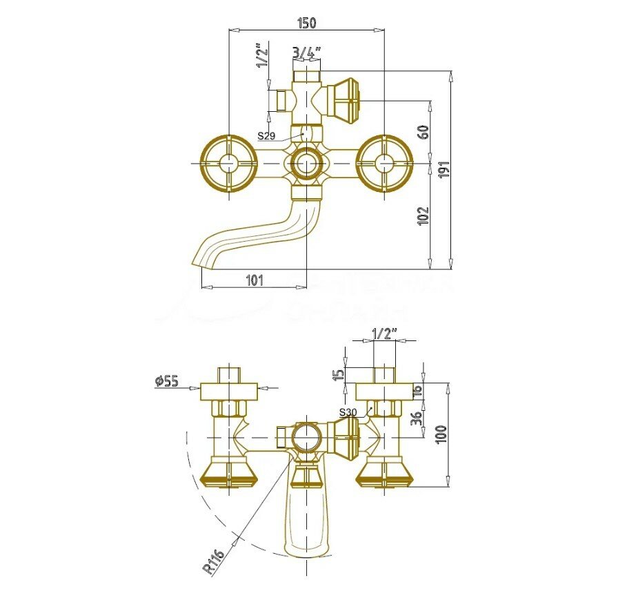 Сохранить10121F Комплект для ванны и душа двухручковый, излив 10 см (душ цветок) ROYAL интересное: