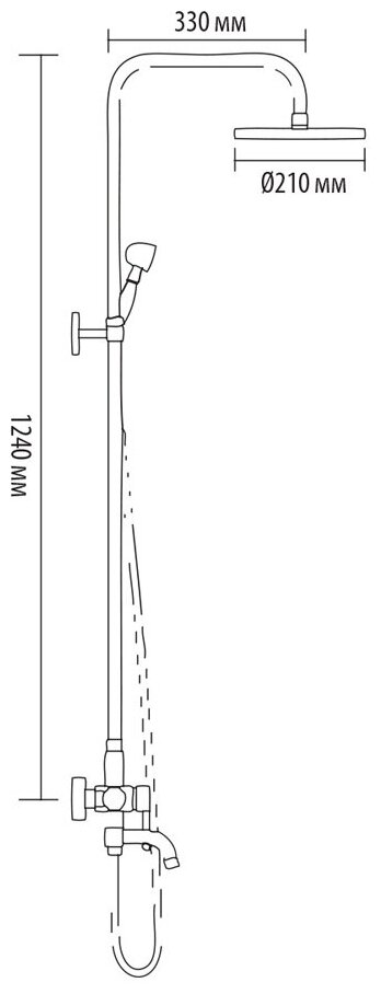 | Дополнительная информация | высота стойки для душа: 1240 мм; диаметр верхнего душа: 210 мм |