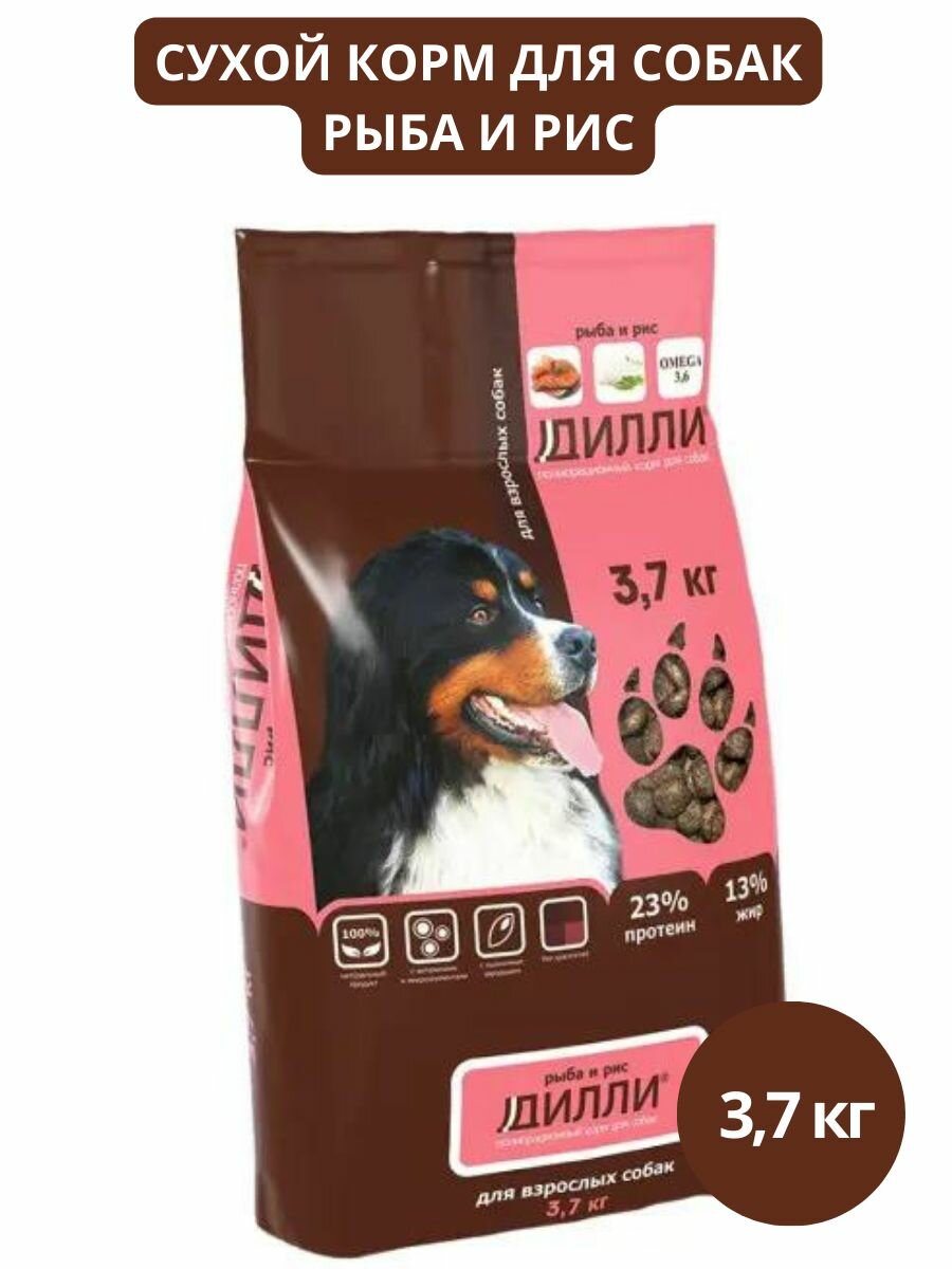 Купить Сухой корм для собак с рыбой и рисом, Дилли 3,7 кг