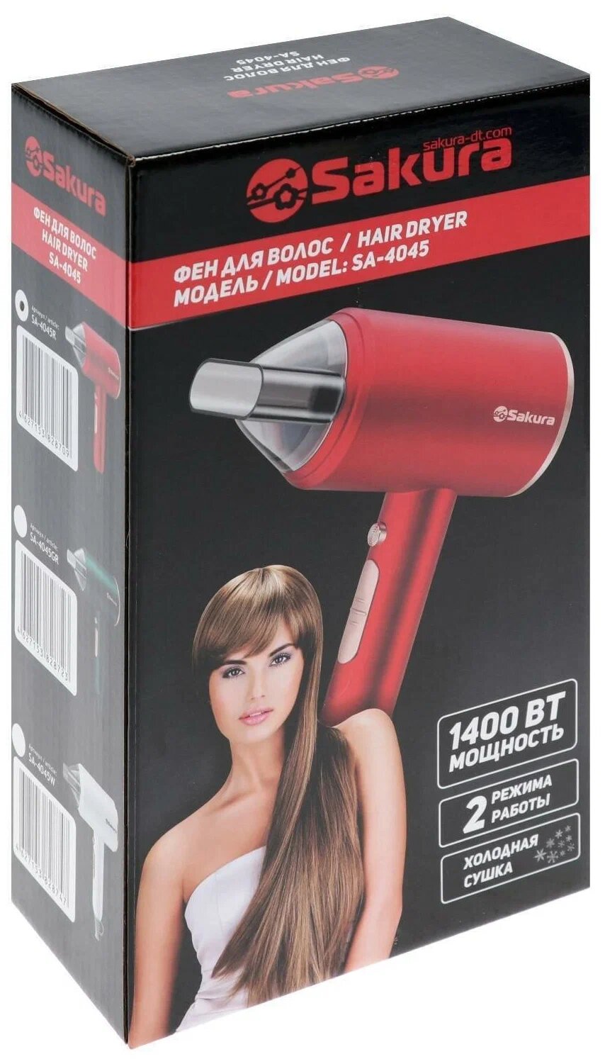 Фен Sakura SA-4045W, 1400Вт, 2 температурных режима, 2 скорости, белый, 1 шт.