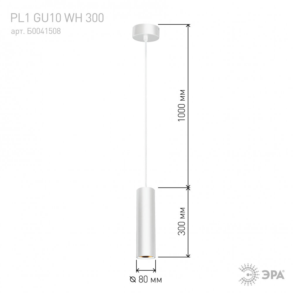 ЭРА PL1 GU10 WH 300 Подсветка подвесной, GU10, D80300мм, белый Б0041508