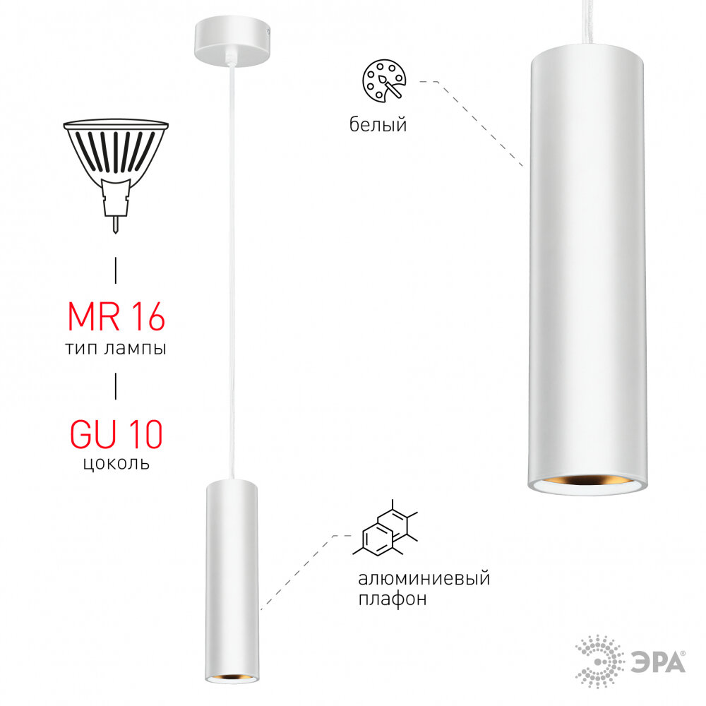 Подвесной светильник Эра PL1 GU10 WH 300 интересное: