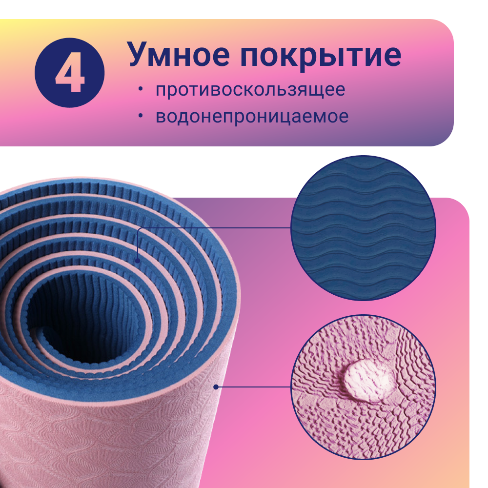 Спортивный тренировочный коврик, Hamsa Yoga, Для йоги и фитнеса с покрытием TPE+TC, Гимнастический инвентарь для фитнеса, Размер 183х61х0.6 см.