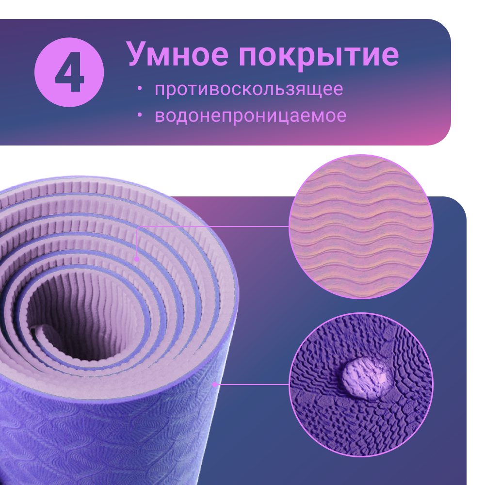 СохранитьСпортивный коврик Nonstopika Relax, для йоги и пилатеса, размер 183*61*0,6см, цвет фиолетовый (2 стороны) интересное: