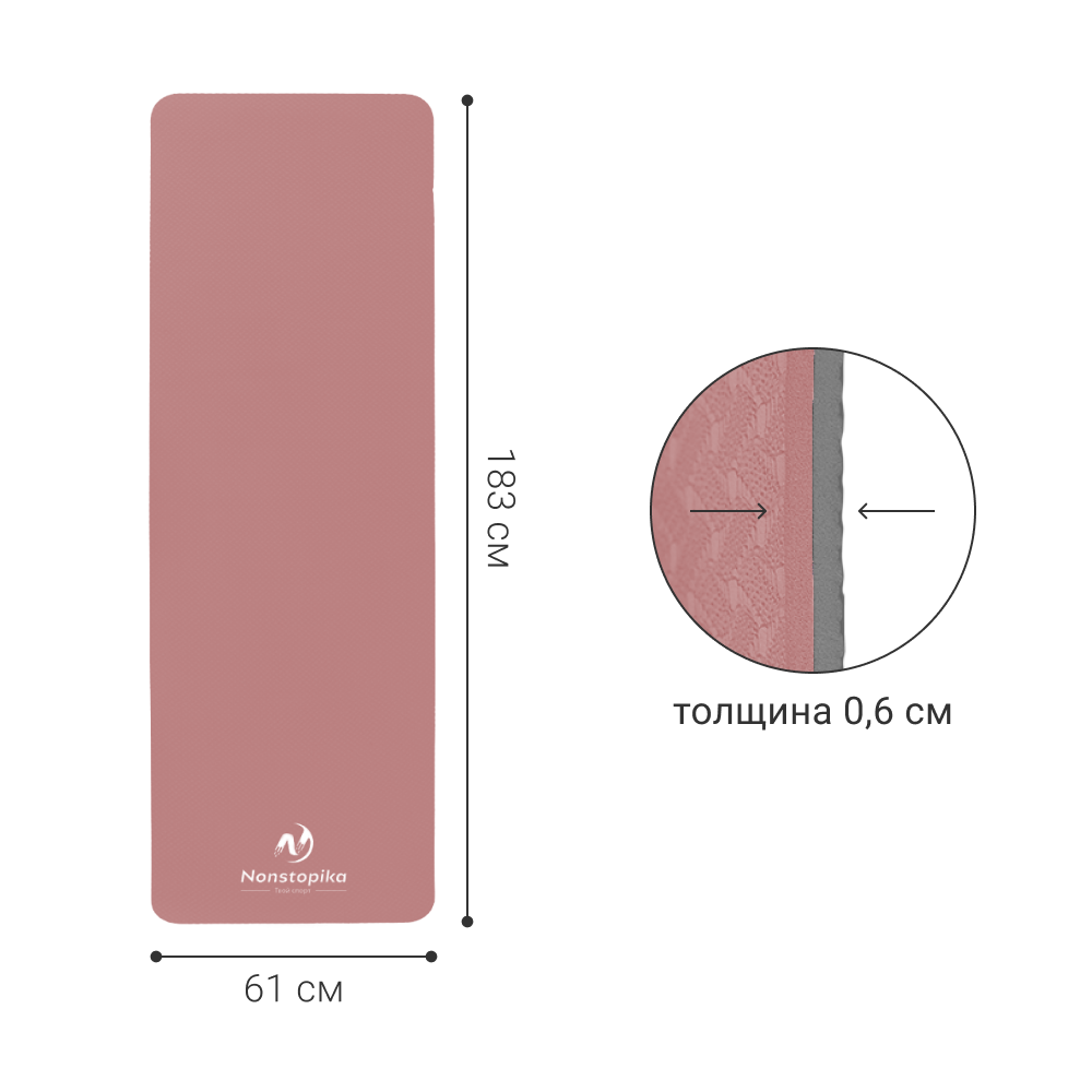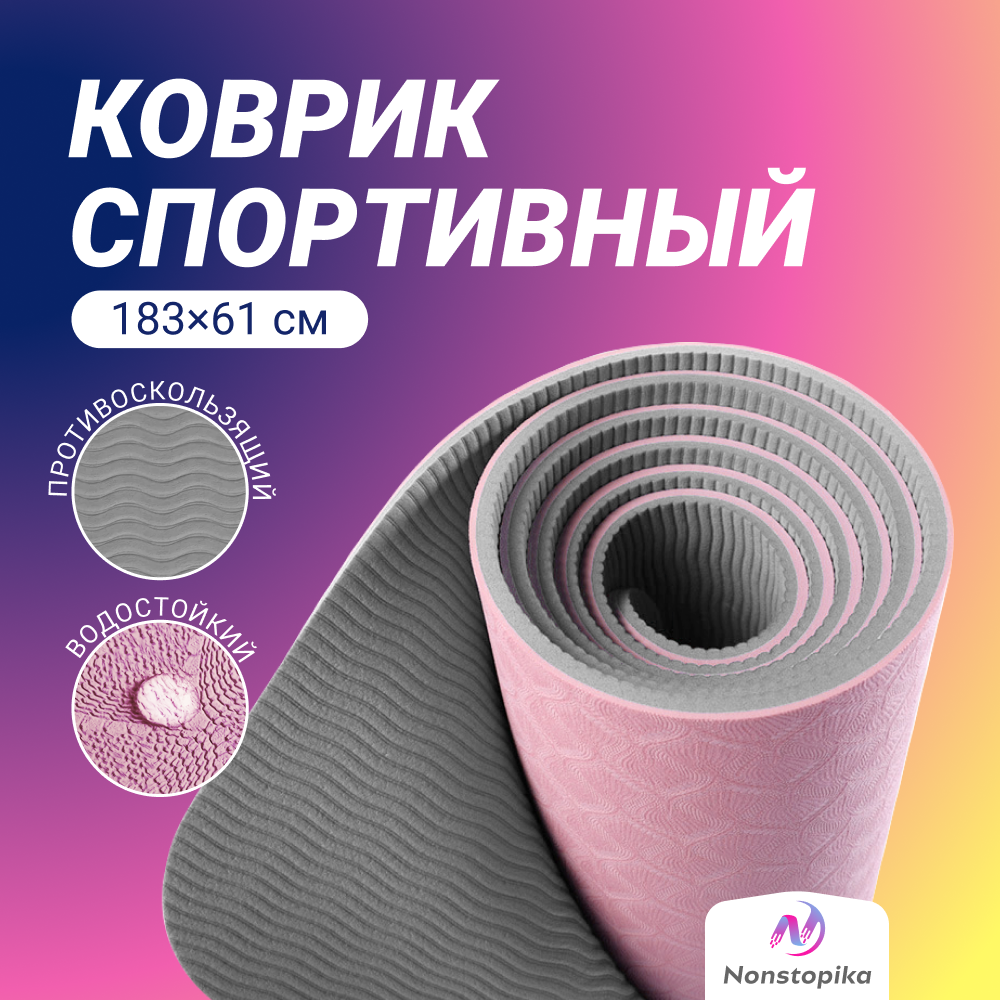 Спортивный коврик Nonstopika Relax, для йоги и пилатеса, размер 183*61*0,6см, цвет фиолетовый (2 стороны)