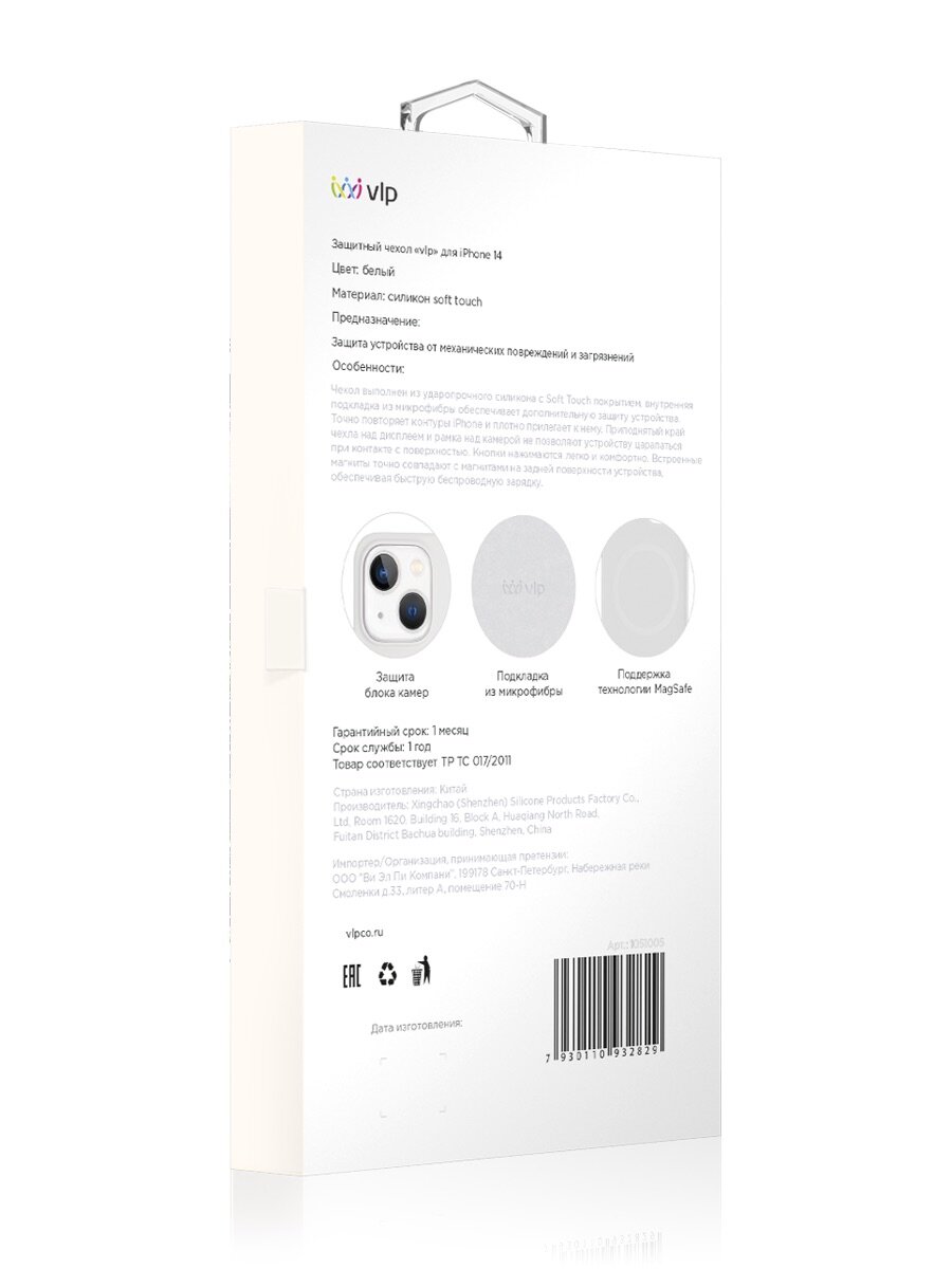 Чехол защитный "vlp" Silicone case with MagSafe для iPhone 14, белый