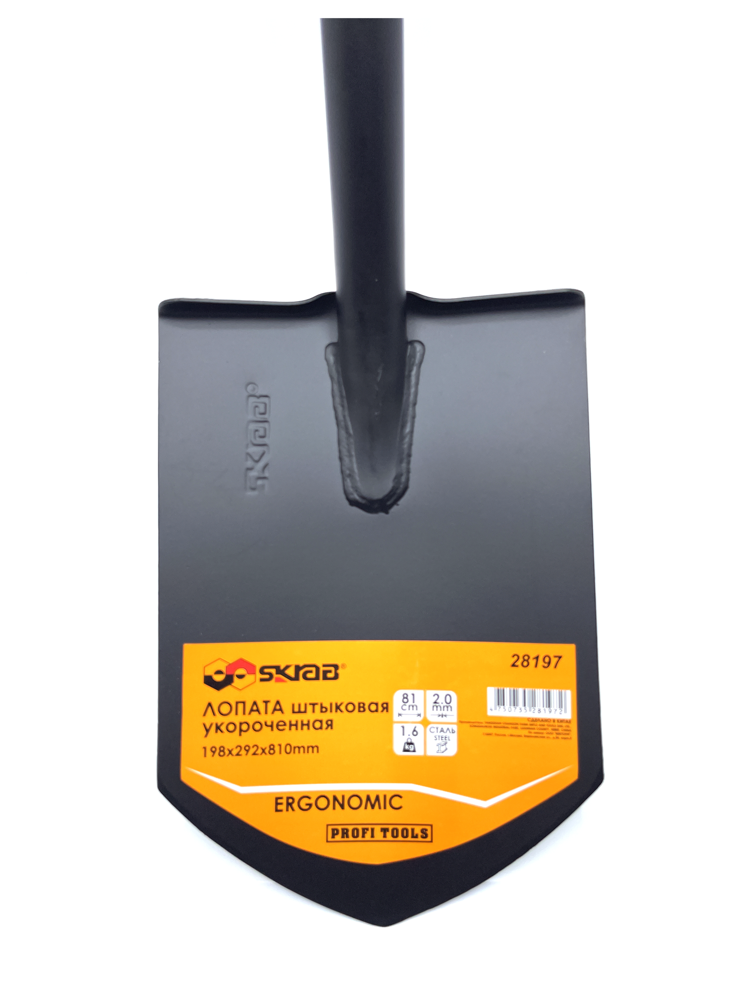 Лопата штыковая 198х292х810мм штыковая укороченная мет. черенок ERGONOMIC 28197