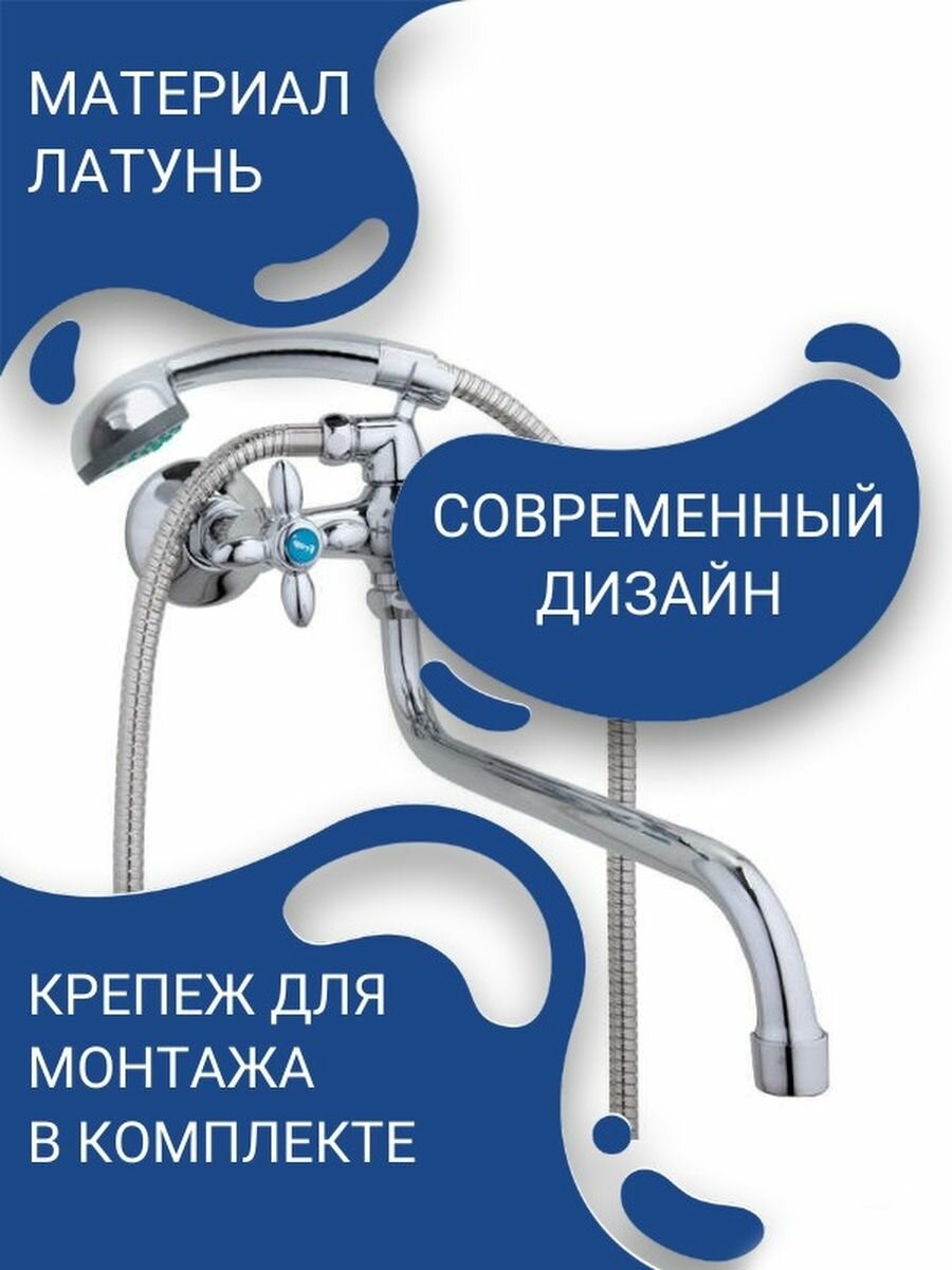 Смеситель для ванны, поворотный излив 30см Латунь.