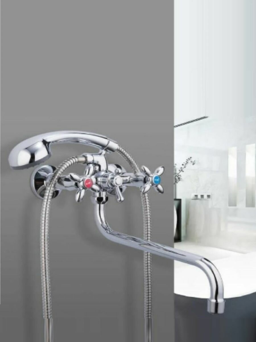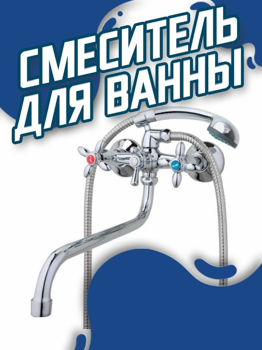 Смеситель для ванны с длинным изливом (маховики крест) Frap F2227-2