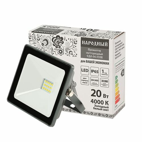 Прожектор светодиодный 20 Вт, 4000 К, IP65, серый СДО-04-020Н "Народный"