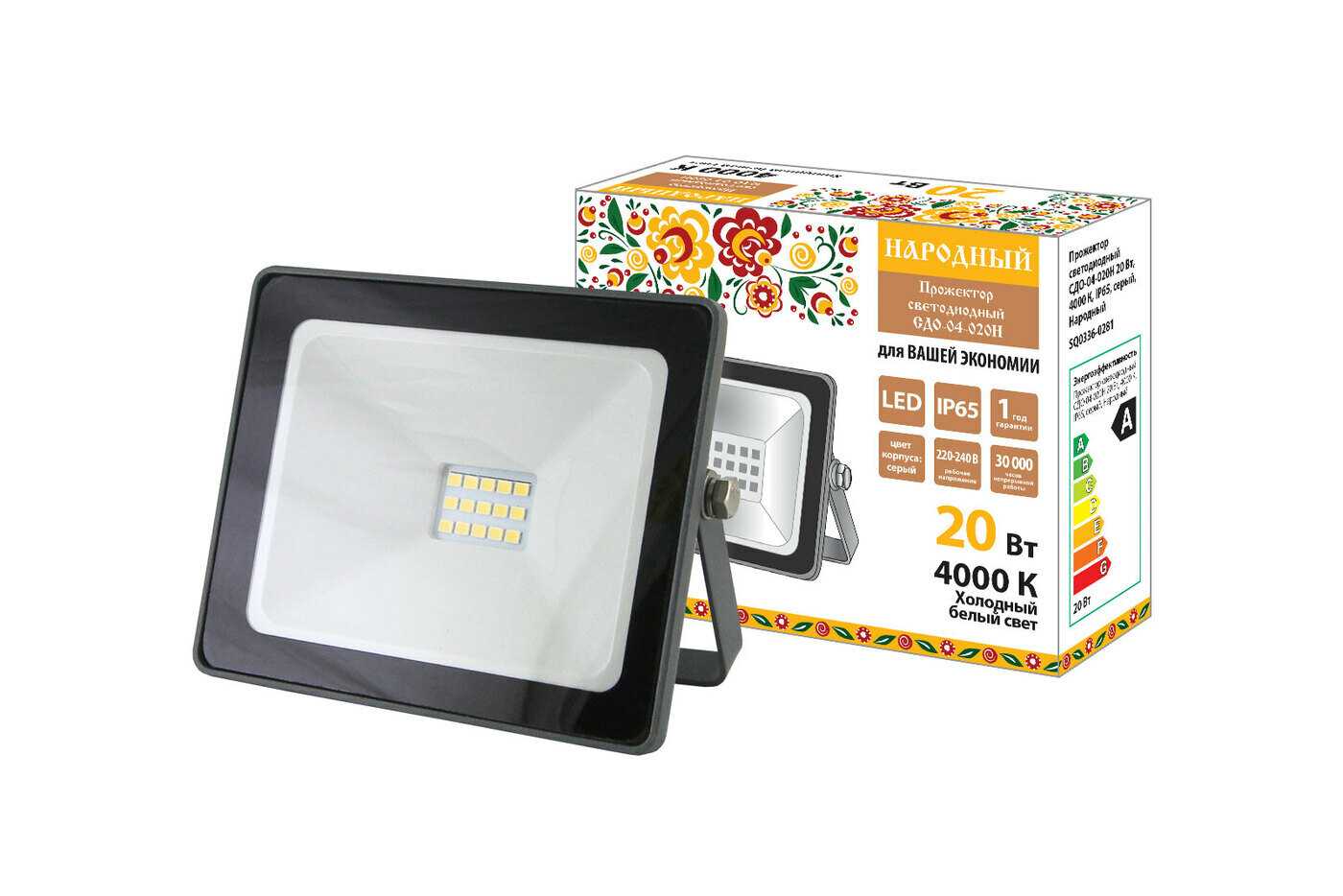 Прожектор светодиодный СДО-04-020Н 20 Вт, 4000 К, IP65, серый, Народный SQ0336-0281 (Артикул: 4100011568)