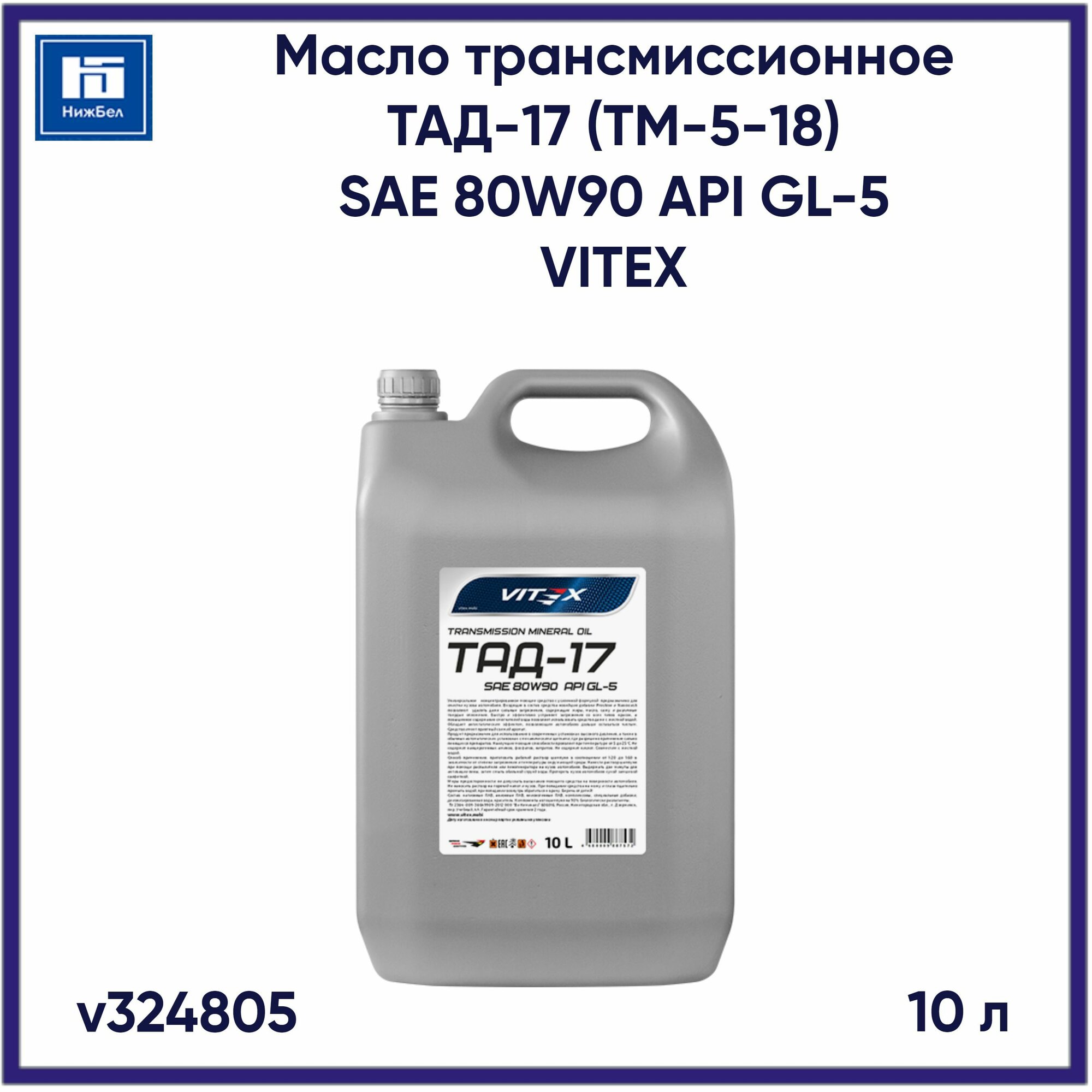 Масло Трансмиссионное Тад-17 (Тм-5-18) Sae 80w90 Api Gl-5 Минерал. (10л) (Vitex) Vitex арт. V324805