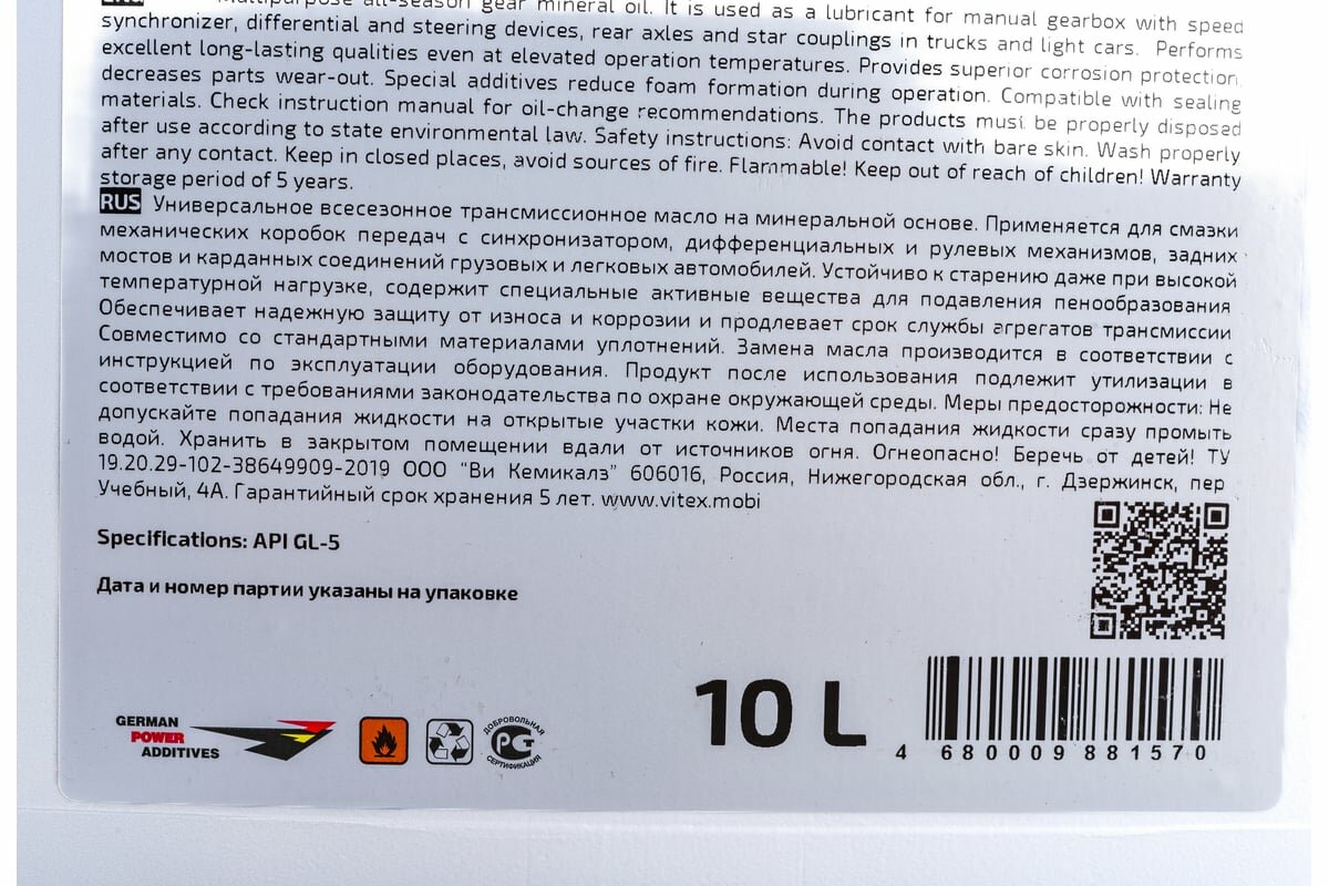 VITEX Масло трансмиссионное ТАД-17 (ТМ-5-18) SAE 80W90 API GL-5 минерал. (10л) (VITEX)