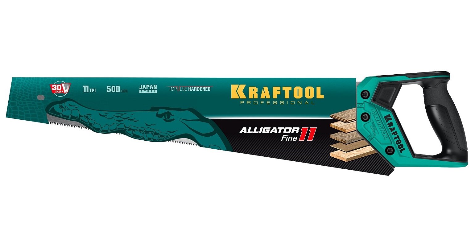 Ножовка для точного реза "Alligator Fine 11", 500 мм, 11 TPI 3D зуб, KRAFTOOL
