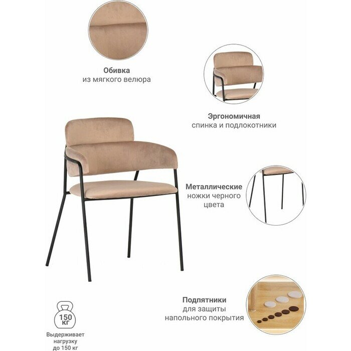 Стул Napoli латте с черными ножками / Стулья для кухни / Стулья кухонные со спинкой / Мебель / Стул мягкий / Стул обеденный