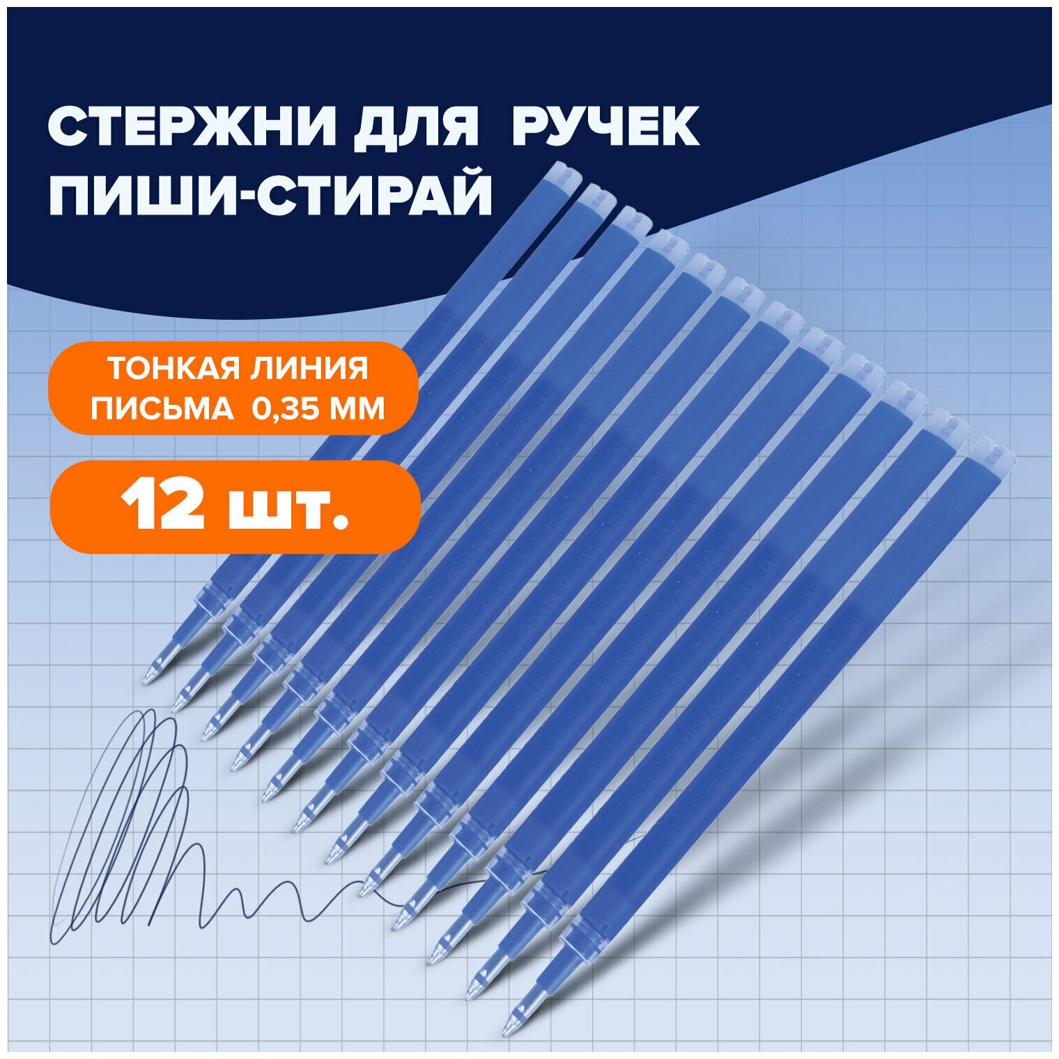 Купить Стержень стираемый гелевый 12 шт PILOT 111 мм, синий, узел 0,7 мм, линия письма 0,35 мм