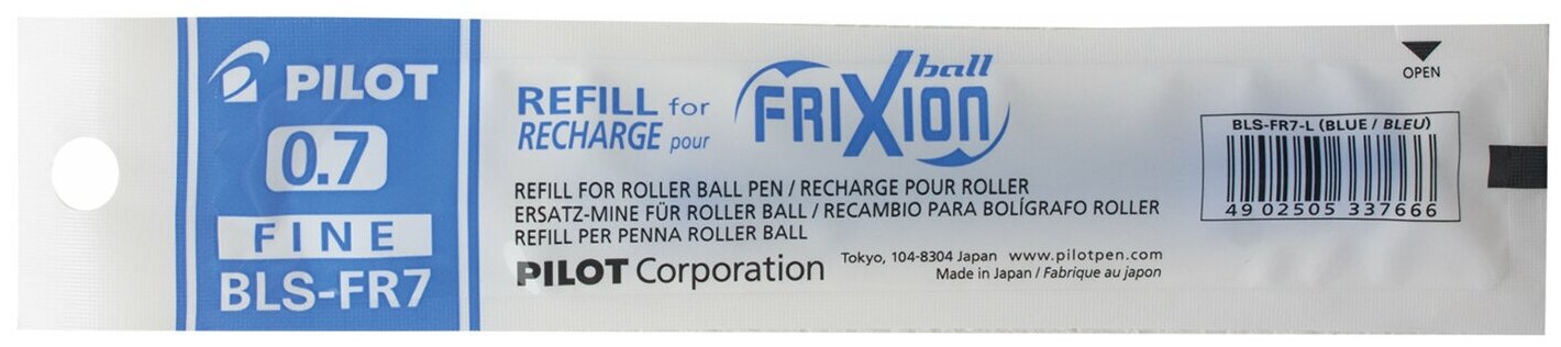 Стержень гелевый Pilot BLS-FR-7 "Пиши-стирай", 111мм (синий, 0.35мм, евронаконечник, для ручки Frixion) (BLS-FR7-L), 12шт.