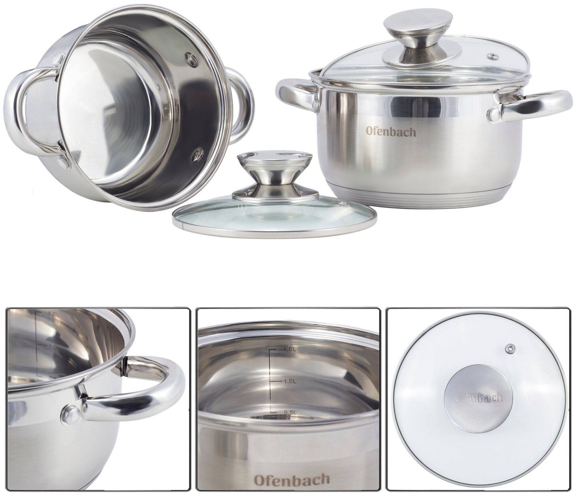Ниже Вы можете прочитать отзывы на Набор кастрюль 4 предмета (1,1л, 1,7л) из нержавеющей стали 926865, ознакомится с подробными характеристиками, посмотреть интересные обзоры и фотографии на Набор кастрюль 4 предмета (1,1л, 1,7л) из нержавеющей стали 926865.