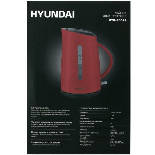 Чайник HYUNDAI HYK-P3024 красный