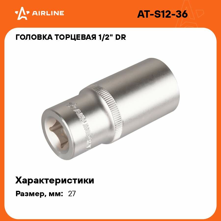 AIRLINE AT-S12-36 Головка торцевая 1/2" DR шестигранная 27мм глубокая ()
