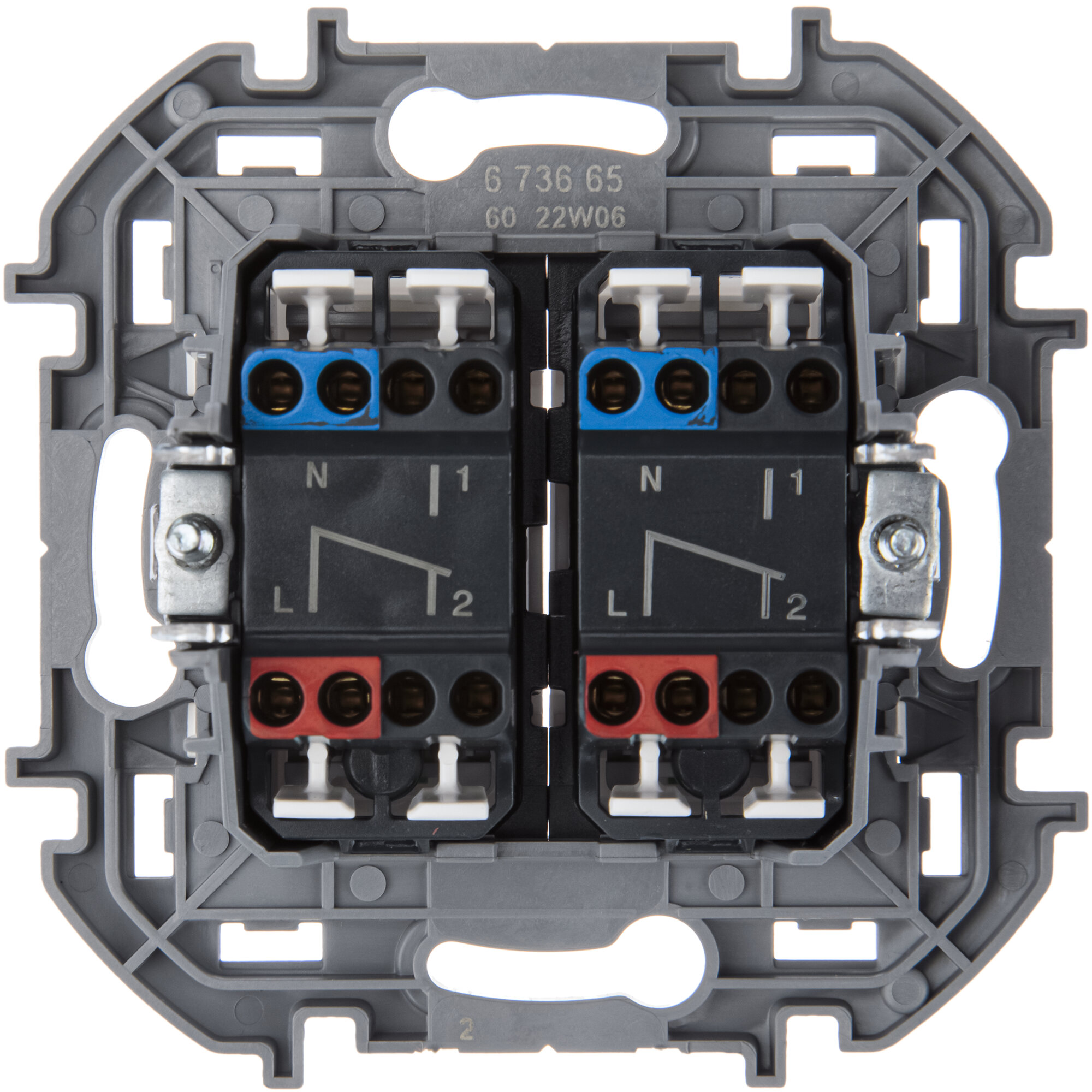 Переключатель модульный двухклавишный с подсветкой- INSPIRIA - 10 AX - 250 В~ - белый 673665 LEGRAND