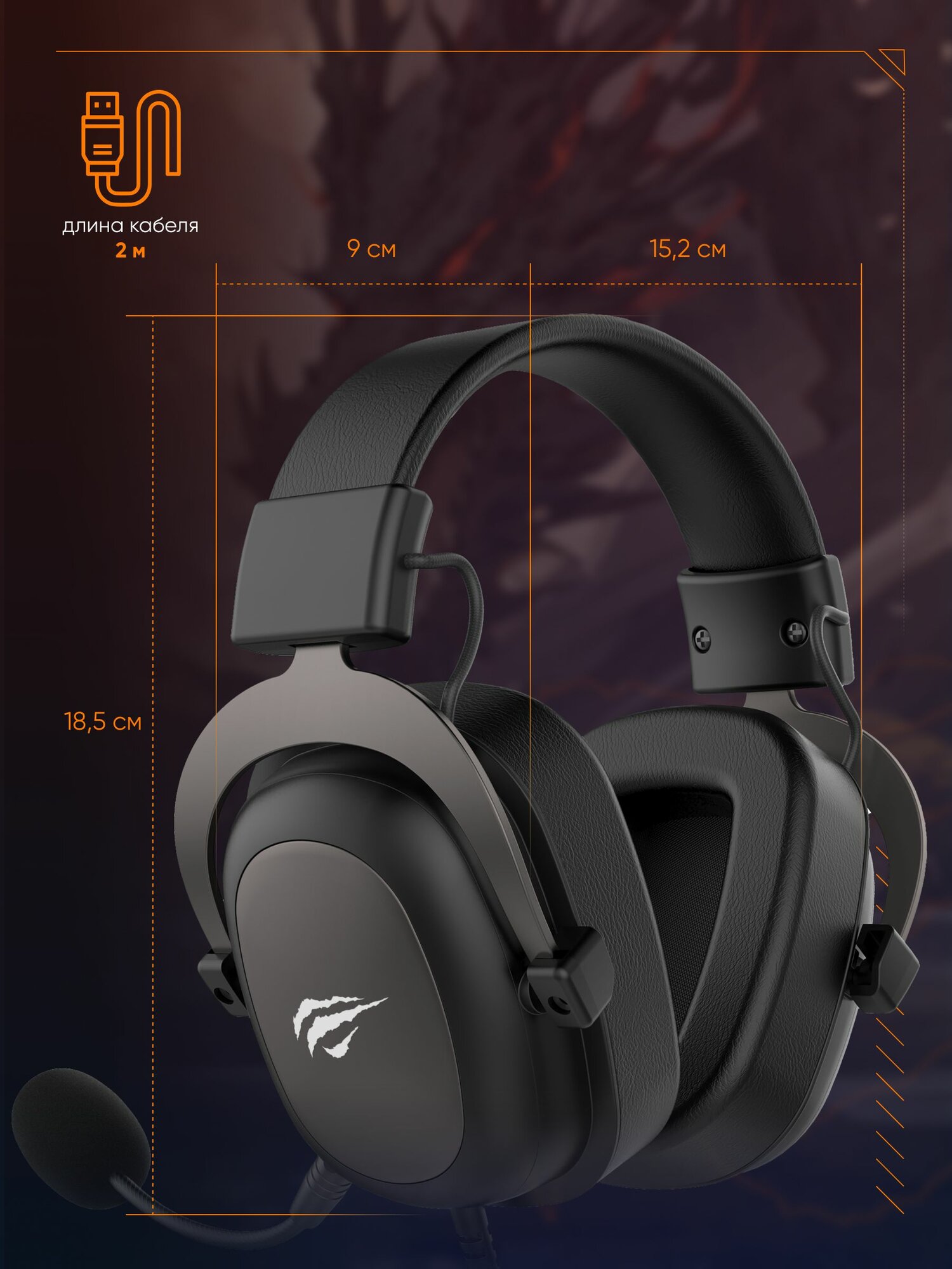 Проводные игровые (геймерские) наушники Havit H659d накладные для компьютера с микрофоном черные, RGB подсветка