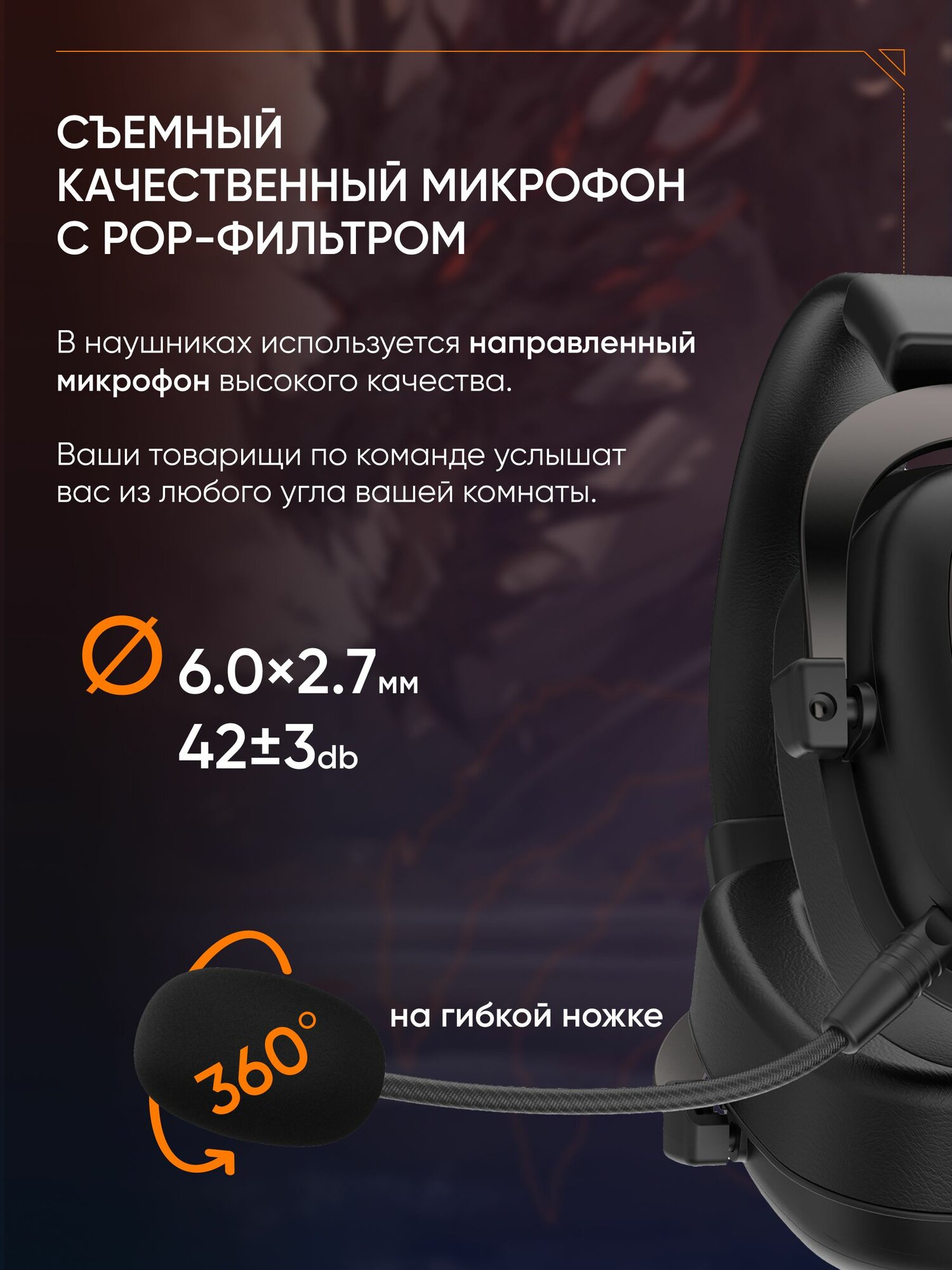 Наушники игровые VOROTEX V2002D проводные. Геймерская гарнитура с микрофоном для ПК, компьютера, ноутбука, jack 3,5 мм, чёрный