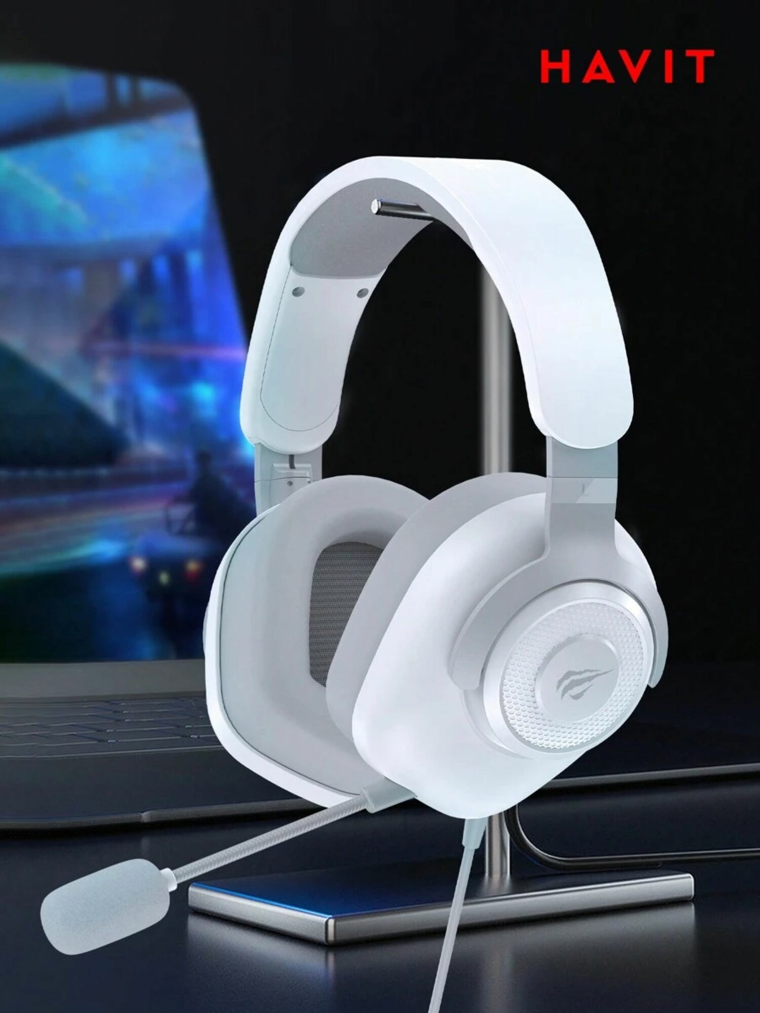 Наушники игровые, геймерские, проводные с микрофоном Havit H2008d белый 3.5 jack