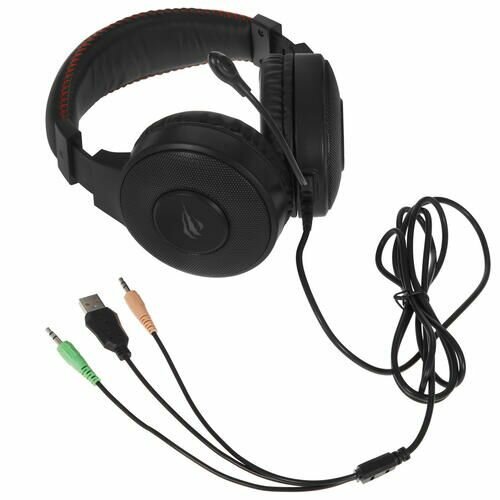 Наушники игровые, геймерские, проводные с микрофоном Havit H2008U 108B чёрный/красный/охра USB