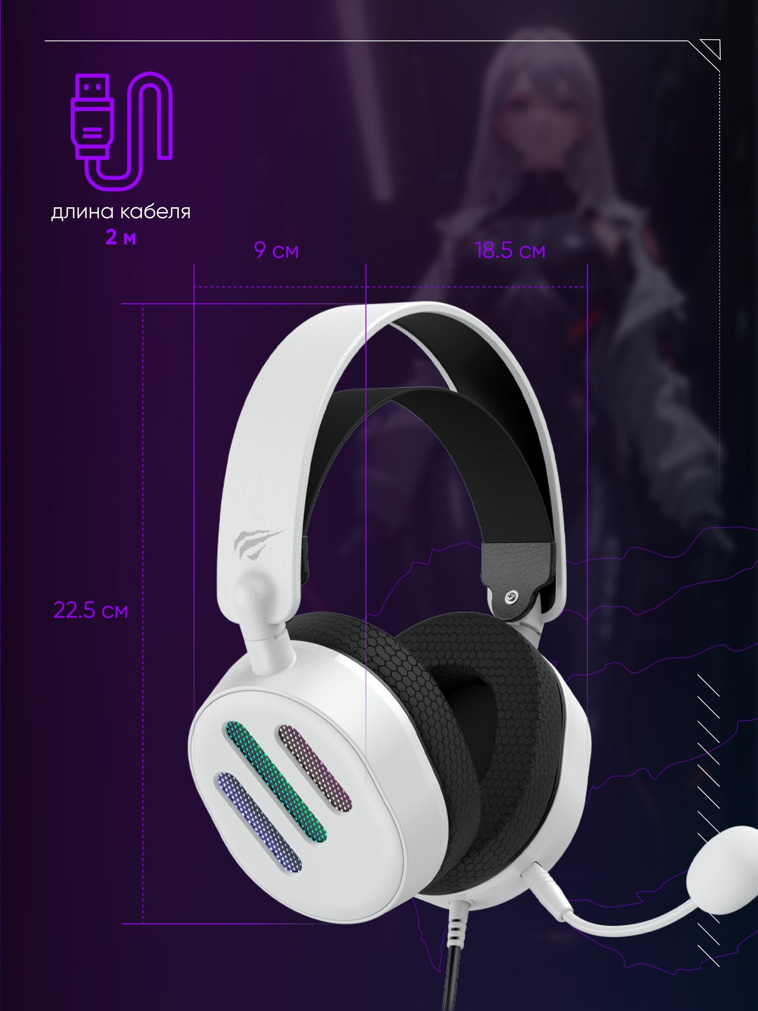 Наушники геймерские, игровые, проводные с микрофоном Havit H2002d белый/фиолетовый 3.5 jack