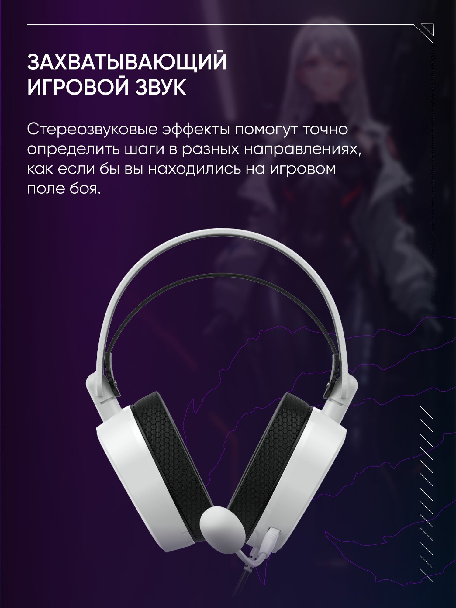 Наушники игровые VOROTEX V2002D-W проводные. Геймерская гарнитура с микрофоном для ПК, компьютера, ноутбука, jack 3,5 мм, белый
