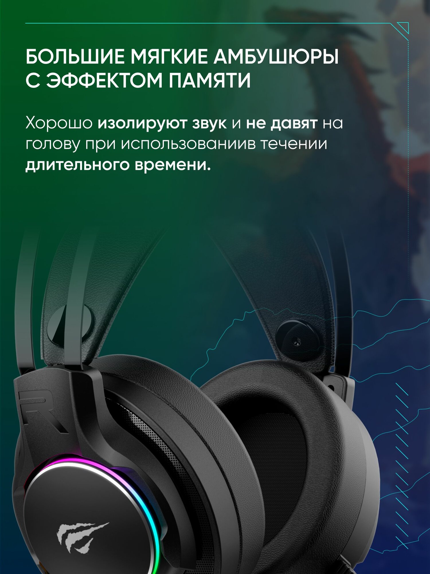 Проводные игровые (геймерские) наушники Havit H659d накладные для компьютера с микрофоном черные, RGB подсветка