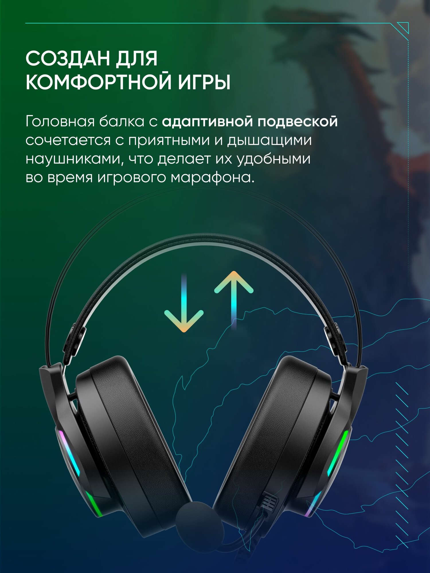 Игровая гарнитура проводная VOROTEX V2002 Plus с USB подключением и RGB подсветкой