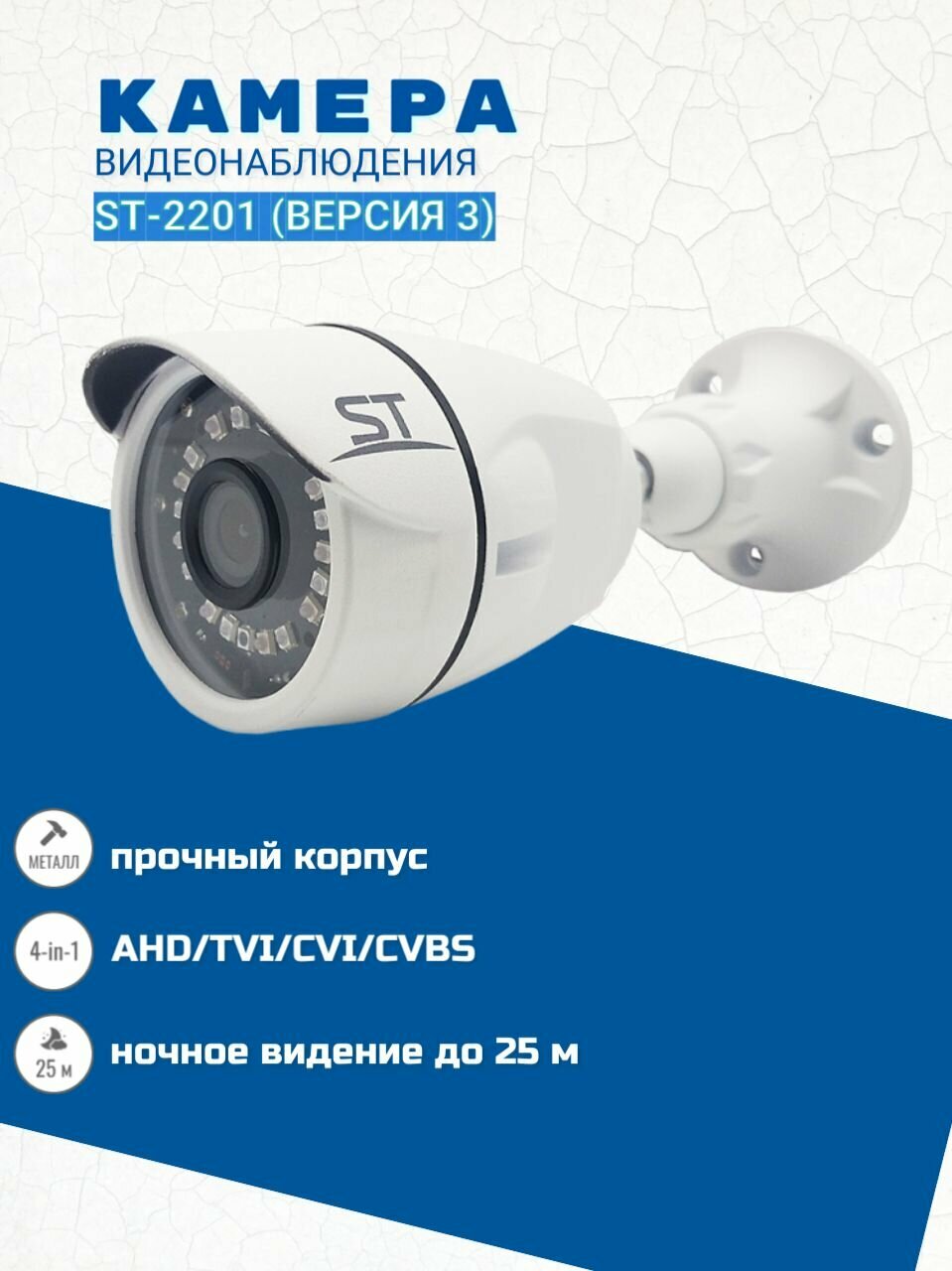 Уличная видеокамера ST-2201, (в. 3), гибрид, 2.1Mп. 2,8мм