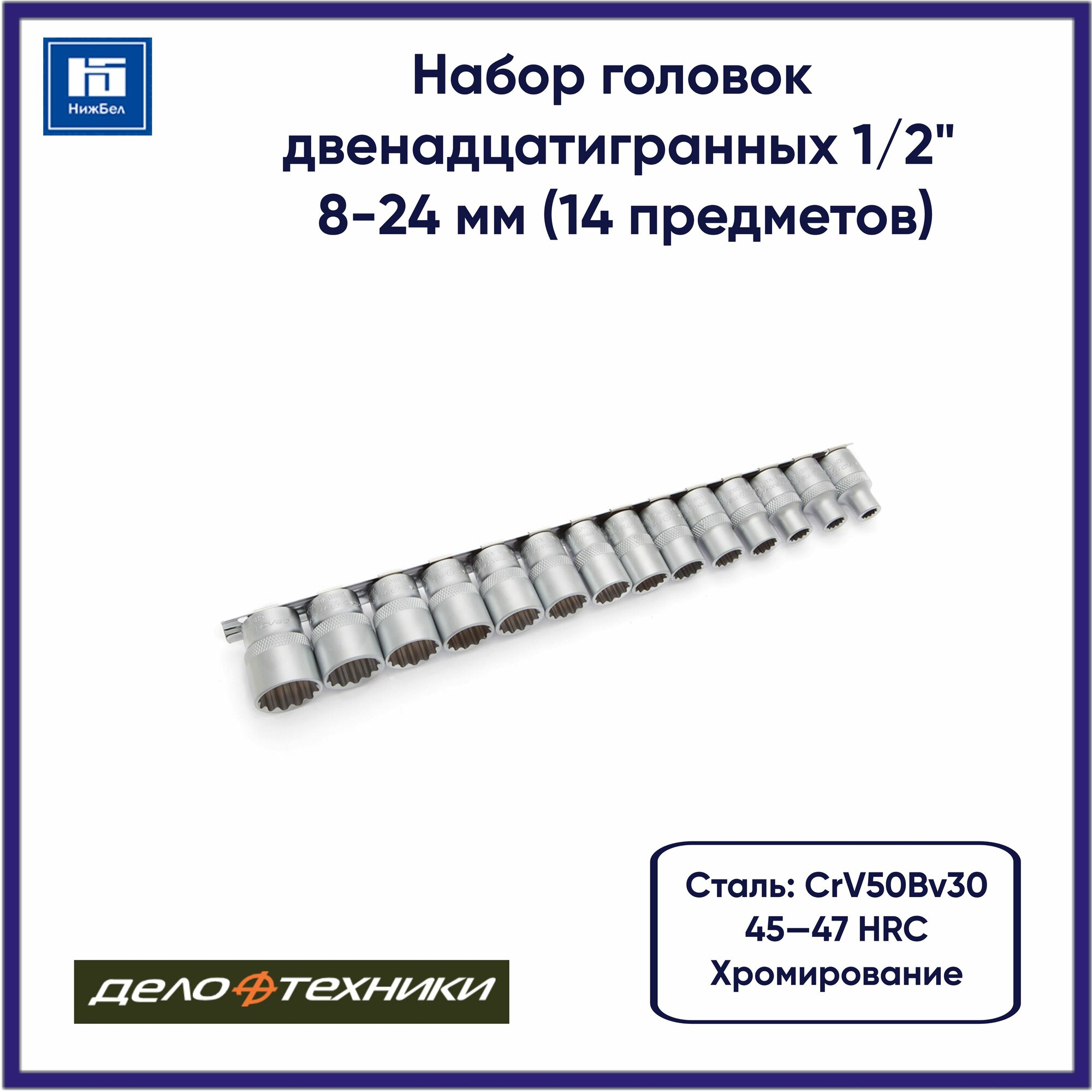 Набор головок двенадцатигранных 1/2" (8-24мм) 14 пр. дело техники