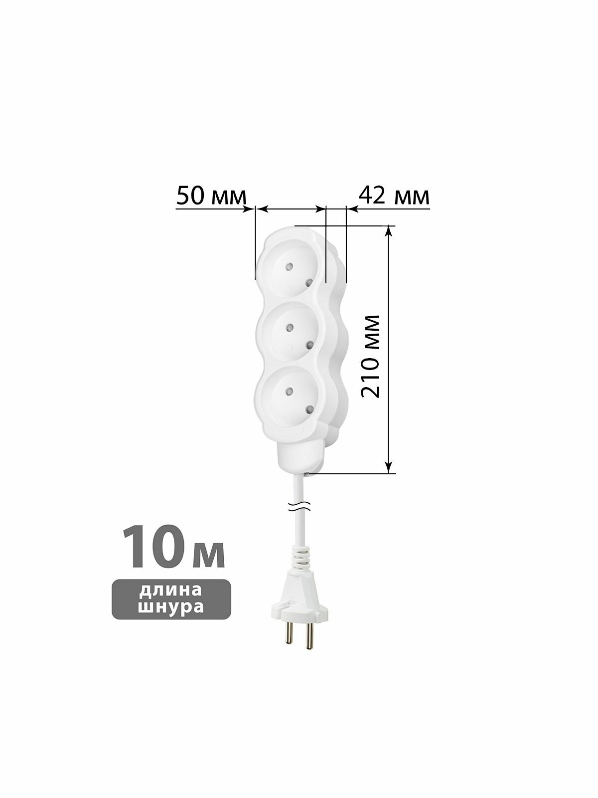 Удлинитель бытовой "Люкс" УЛ3 3 гнезда, 10м, б/з, с з/ш, ПВС 2х0,75 мм2 10А/250В бело-серый, TDM SQ1303-0187 (1 шт.)