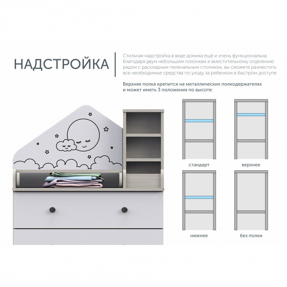 Пеленальный комод Атон Мебель Сириус Alf трансформер шимо светлый-белые фасады