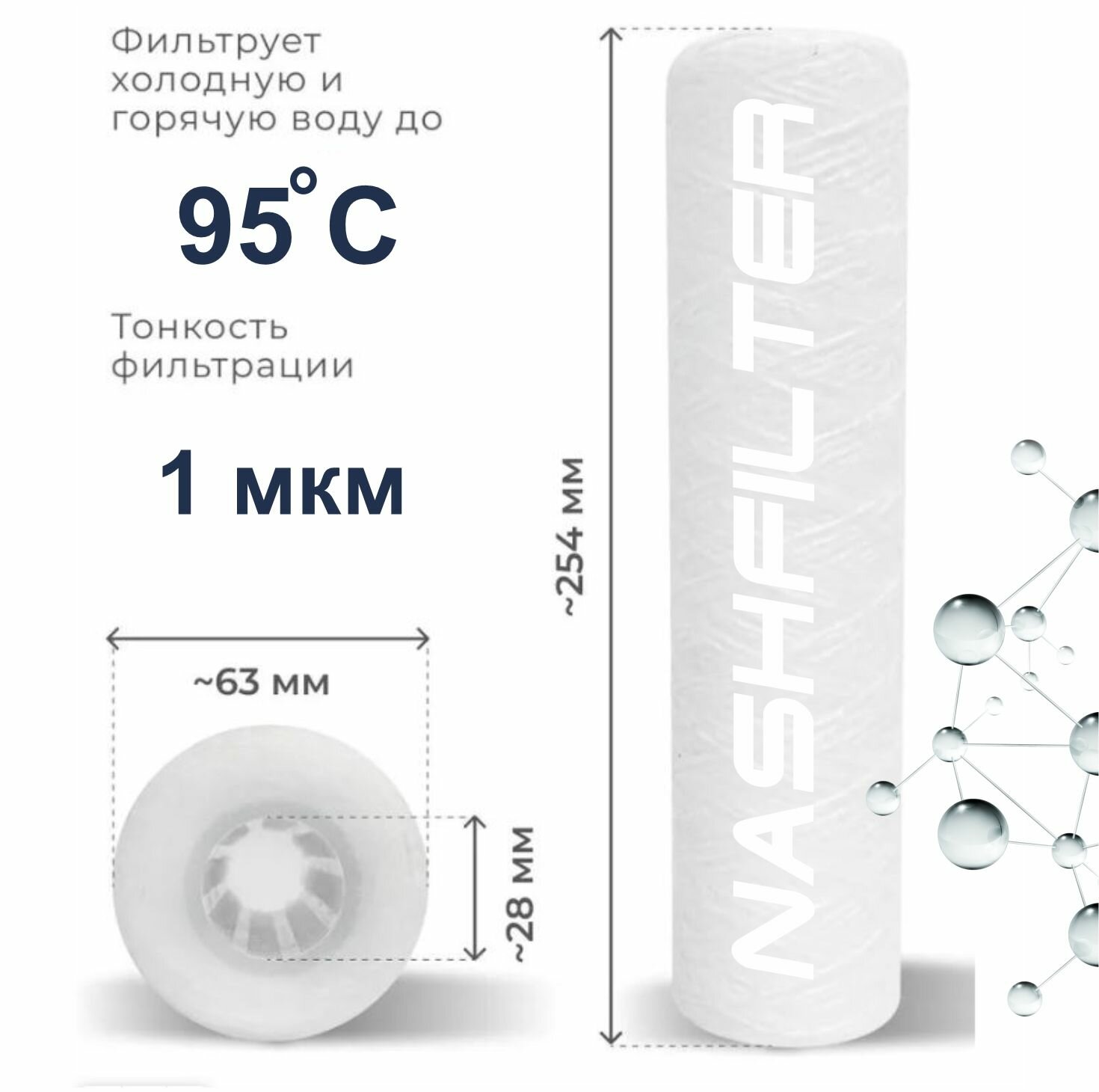Картридж для фильтра из полипропиленовой нити PS-10SL 10 мкм для механической очистки холодной и горячей воды, комплект 3 штук