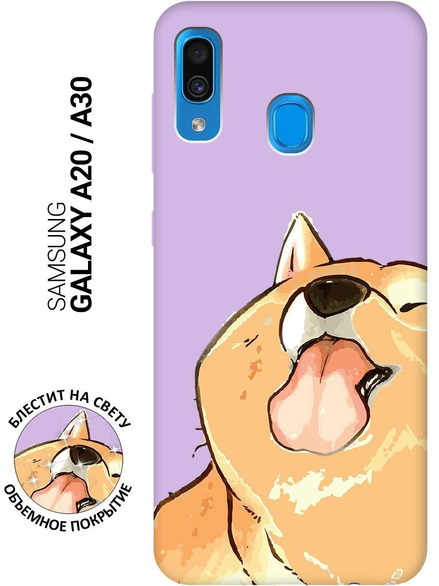Купить Силиконовый чехол на Samsung Galaxy A20, A30, Самсунг А20, А30 Silky Touch Premium с принтом "Shiba" сиреневый
