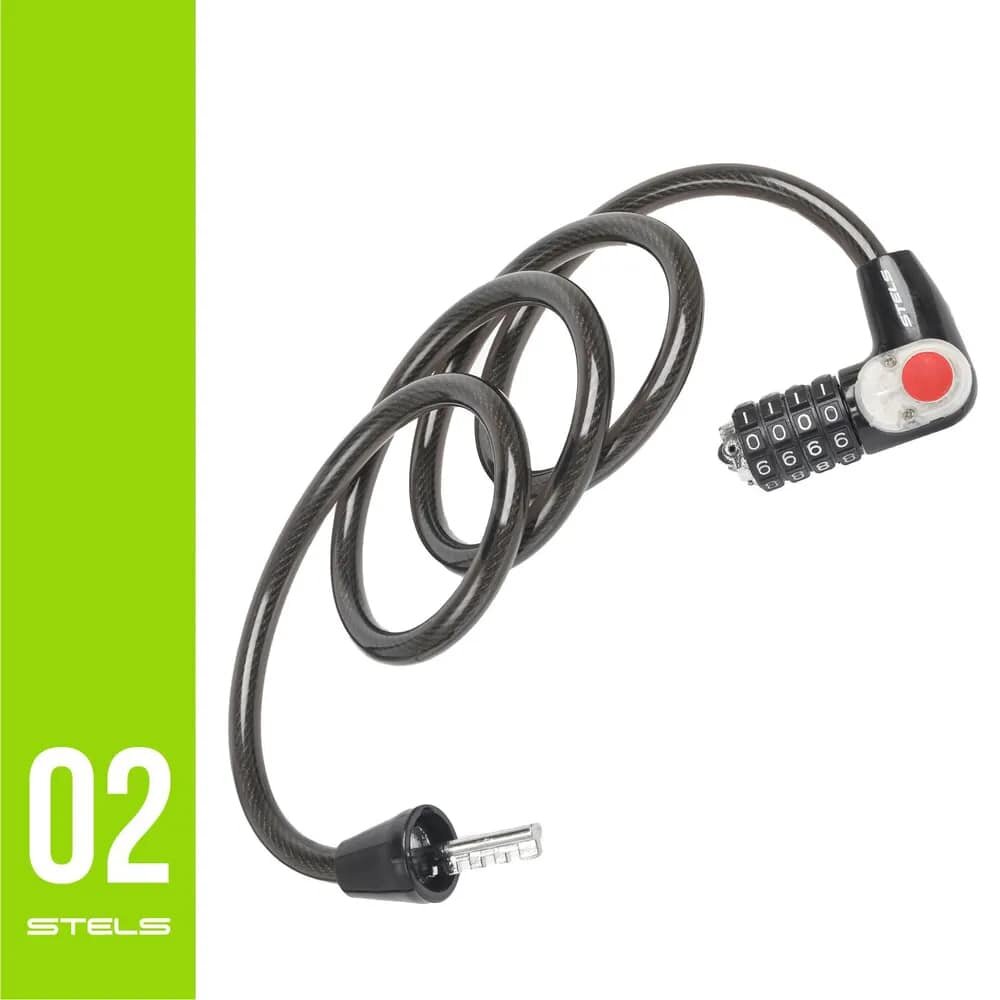 Замок для велосипеда 12х1800мм STELS 87306 с ключом, чёрный NEW (item:010)