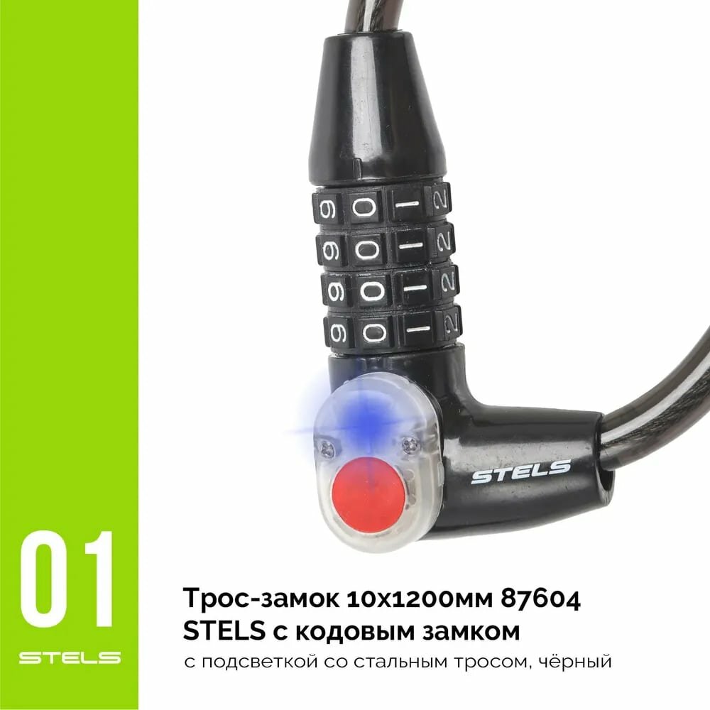 Купить Трос-замок STELS 10х1200мм 87604 с кодовым замком с подсветкой со стальным тросом, чёрный NEW