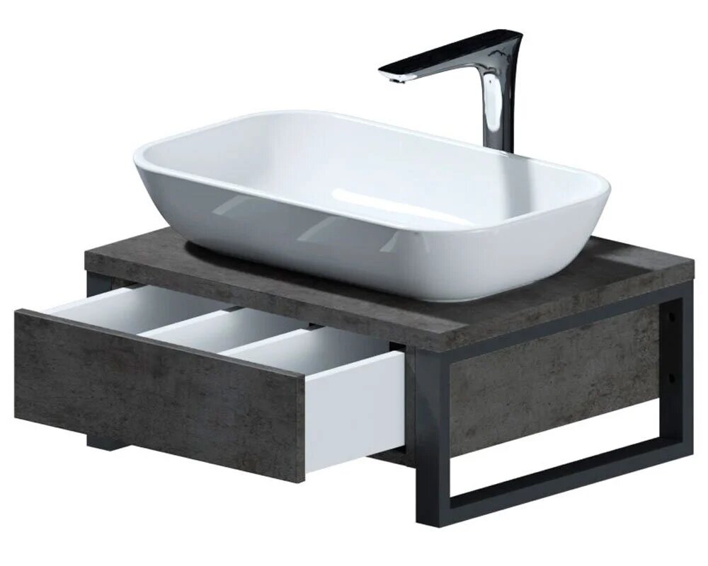 Купить Тумба под раковину в ванную 1Marka GRUNGE LOFT 60 см, Подвесная, с металлическими кронштейнами, цвет Бетон темно-серый Ц0000001581