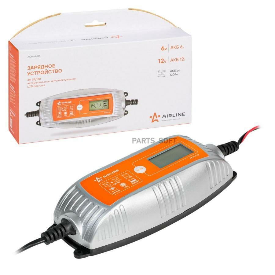 Зарядное Устройство Airline 6/12 В 4 А Автоматическое Интеллектуальное Lcd Дисплей Электронное AIRLINE арт. ACHA01