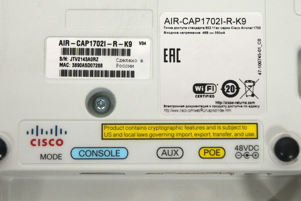 Точка доступа Cisco AIR-CAP1702I-R-K9 2хLAN 1 Гбит/с PoE MIMO интересное: