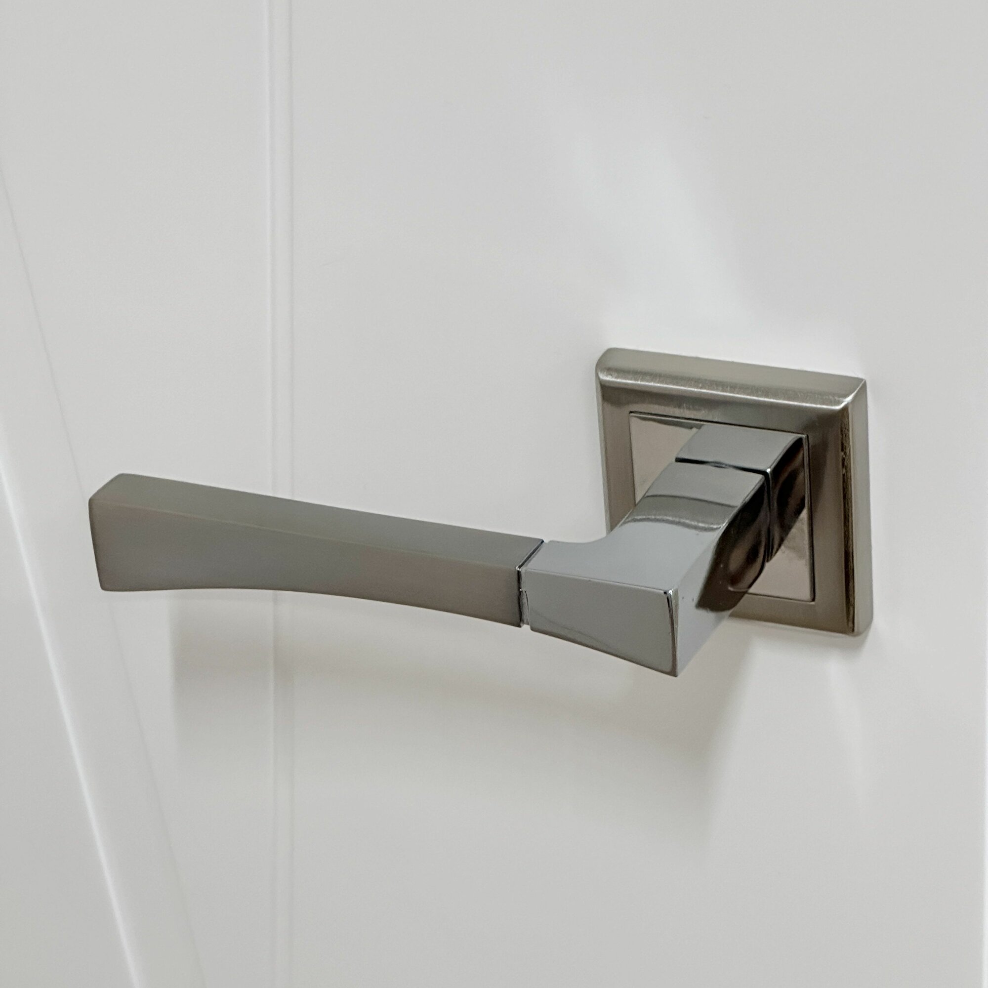 Дверная ручка на квадратной розетке RUCETTI RAP 12-S SN/CP белый никель/полированный хром