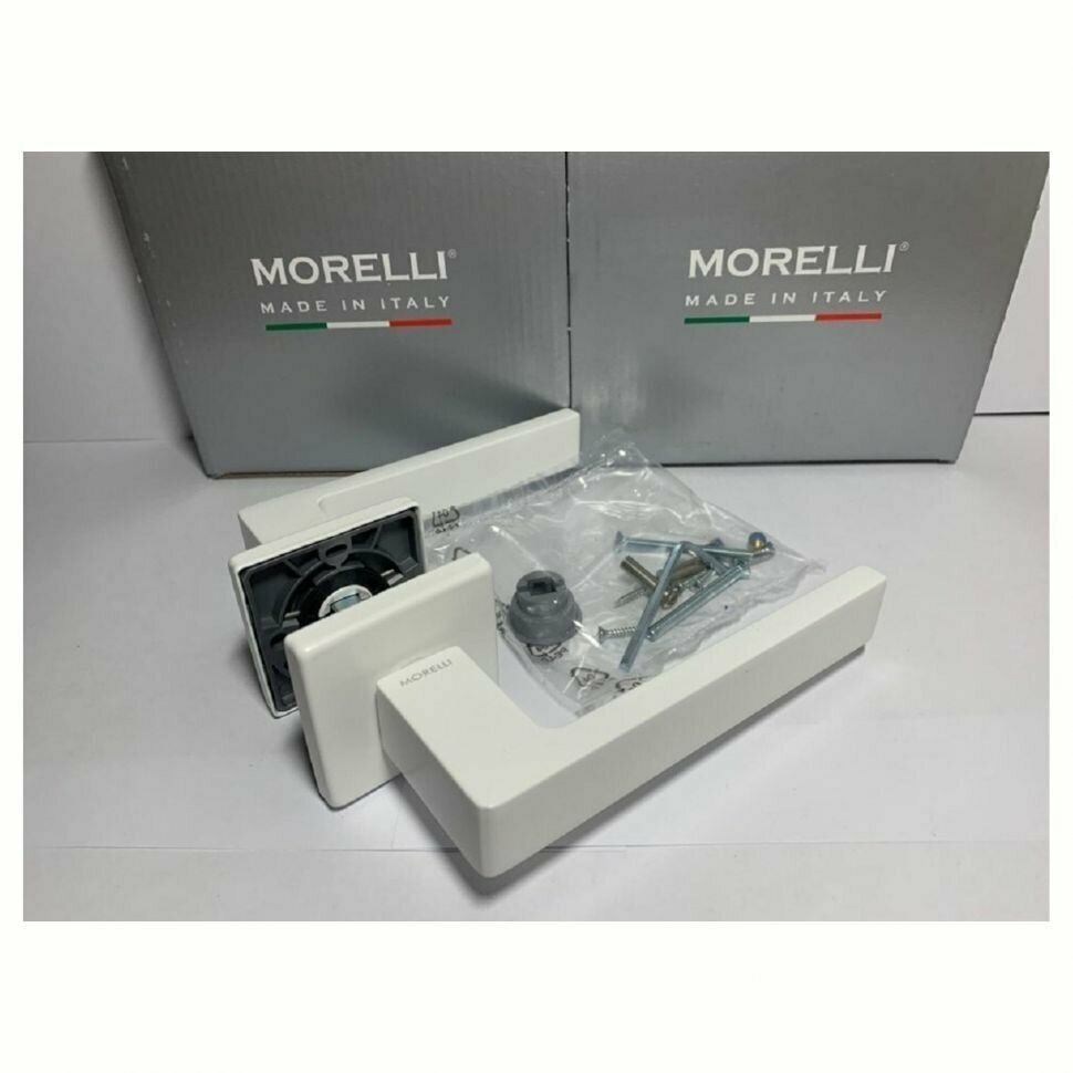 Ручка дверная / Morelli Luxury / Италия / HORIZONT-SQ BIA / Толщина розетки - 7 мм / Цвет - белый